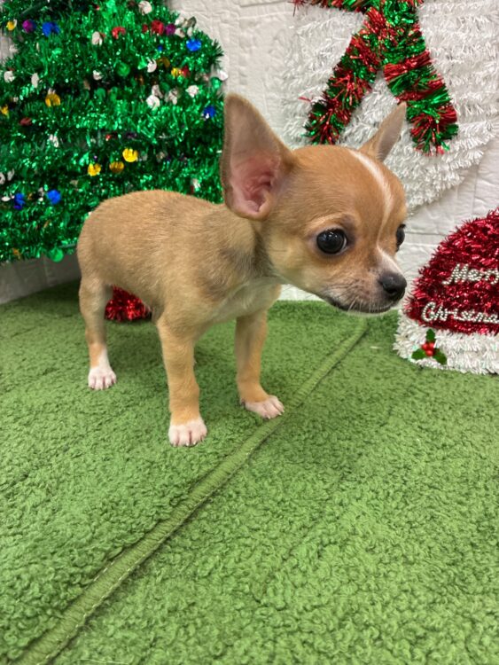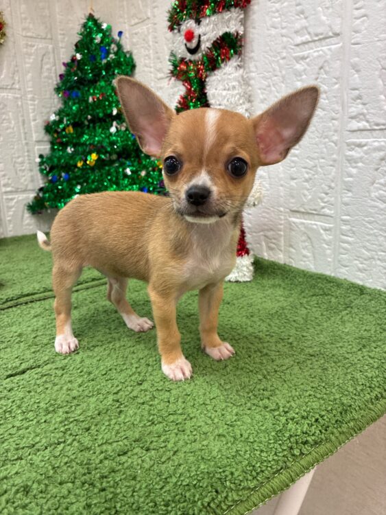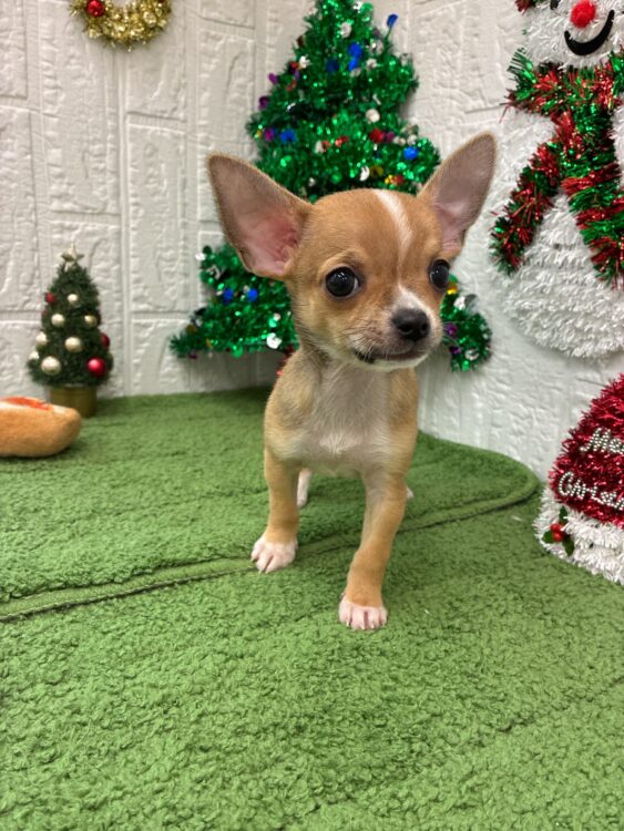 チワワ 2025.9.20生♂ カラー:フォーン&ホワイト 入店時体重:770g パパ:フォーン(スムース)2.5kg ママ:フォーン(ロング)2.8kg スムースのチワワくんがやって来ました〜😆🎶 ちっちゃくてちっちゃくて こわれてしまいそうなチワワくん☺️♡ 毛色も優しいフォーン&ホワイト💛 まるでバンビちゃんのよう🦌✨ 頭と尻尾の先だけ白いのが チャームポイントです😍 見た目と違って、ご飯は モリモリ食べて、おもちゃで よく遊びます🧸 |