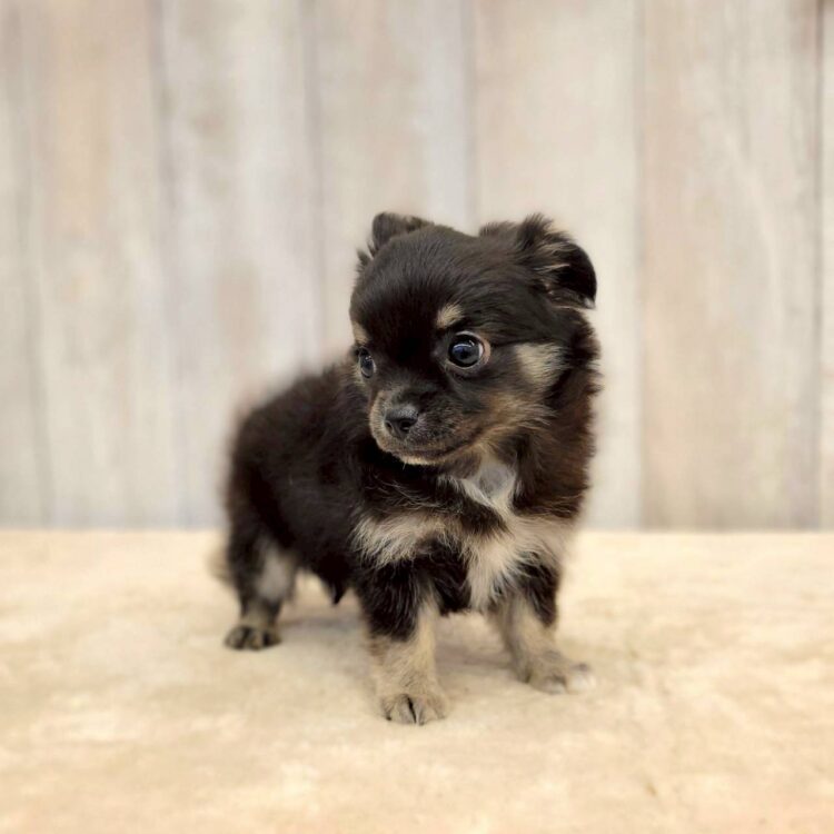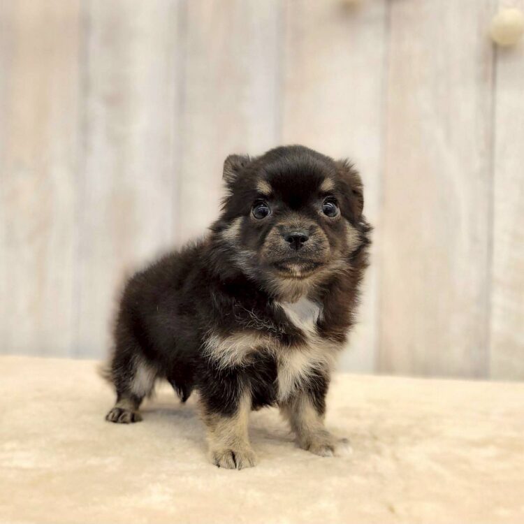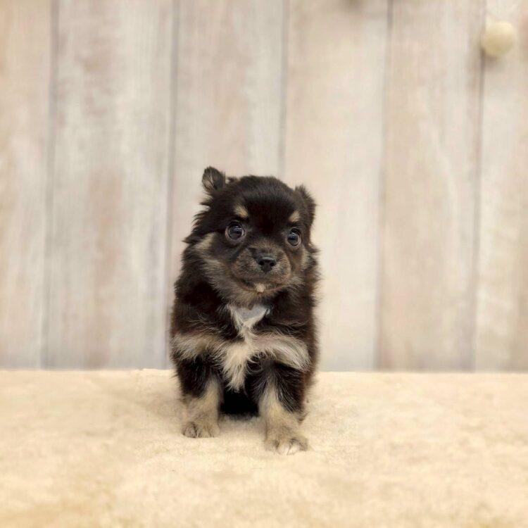 カラー:ブラックタン&ホワイト (光の当たり方によってブルーカラーにも見えます💙✨) 12/2現在体重:755g パパ:ブラックタン&ホワイト 2.5㌔ ママ:ブラックタン 2.5㌔ あんよ短め!!もふもふ毛量と ぽてぽてぼでぃで 歩幅狭めのてくてく歩きがたまらんです🤤✨ まだまだよそよそしいですが 声掛けしたり 他のわんこと挨拶すると しっぽプリプリしたりする姿も…♡♡ お部屋で話すとスタッフの足の間に入ったり 後ろにピトッとくっついたり 緊張しながらも甘えてくる所が可愛すぎます🤦♀️♡ |