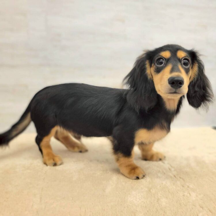 誕生日:2025.9.30 性別:男の子 毛色:ブラックタン 2/12現在体重:3kg パパ:ブラック&イエロー 4.4kg ママ:ゴールド 3.5kg チャームポイントは大きなお目目👀✨✨✨ 眉毛も大きく顔立ちくっきりで お顔の輪郭も綺麗で凛々しく凄く美形です✨✨✨ ボディは筋肉質ガチムチボディ💪🏻💪🏻 (ちょっぴり?お肉が付いてるのは内緒🙊) 姉妹店に入店時からしっかり食べて パンパンになったお腹の状態でも まだ食べる〜〜!!!!とダックスの食いしん坊さ 全面に出してぽてぽてお腹のまま全速力でお部屋走っていました🤭 日中は湯たんぽやヒーターの上で ぬくぬくしながら寝てることも多く ガラス越しでも目が合うと しっぽブンブンですぐにヘソ天して 撫でて〜〜と甘えてきてくれます🫠️🩵 性格も落ち着いていてあまり鳴くこともなく ご飯の時もじーっとお部屋でくつろぎながら 待ってくれています☺️ |