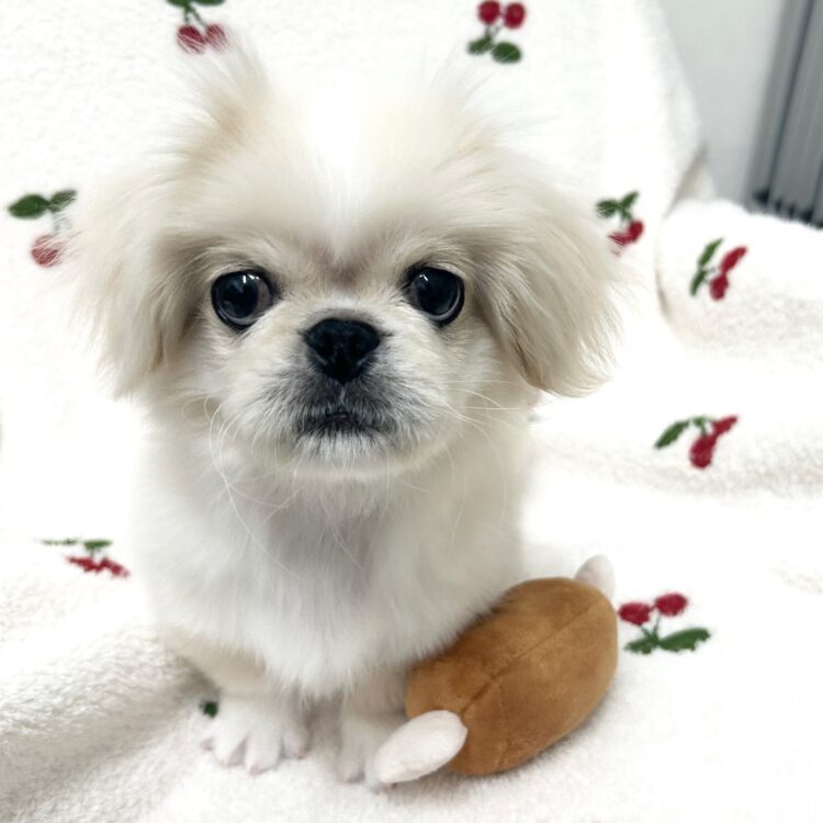 ぺちゃ顔が可愛いペキニーズ君が仲間入りです! 2025年10月15日生まれ 毛色 :クリームホワイト 現在の体重 :2.48kg(1/30現在) お父さん:6kg お母さん:6kg 特有のぺちゃ顔がたまらない可愛さのペキニーズくん! とってもマイペースな子で遊ぶことも大好き! 落ち着きがあり賢い犬種なので 初心者の方にもおすすめの犬種ですよ! 可愛すぎるペキくんにぜひ会いに来てください! お店のインスタグラムにて日頃の様子など動画もアップしております♬ 写真だけでは伝わらない可愛さや魅力を見ていただけます! @pcp_oshima で検索していただくか、 検索から『ディスワン大島店』で 検索お願いいたします! ※生体費用のほか、 ・ワクチン接種代(税込8,800円×接種回数分) ・マイクロチップ代(税込5,500円) を頂戴しております。 ※血統書が別途必要なお客様には税込み5500円を頂戴しております。 ※当店では生命保証代は無料でついております。 ※上記以外の費用はかかりません。 |